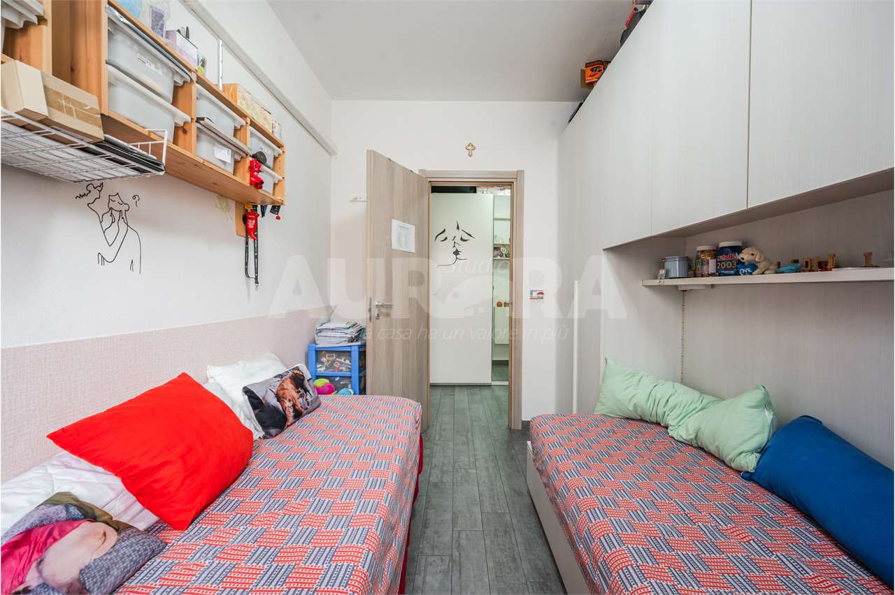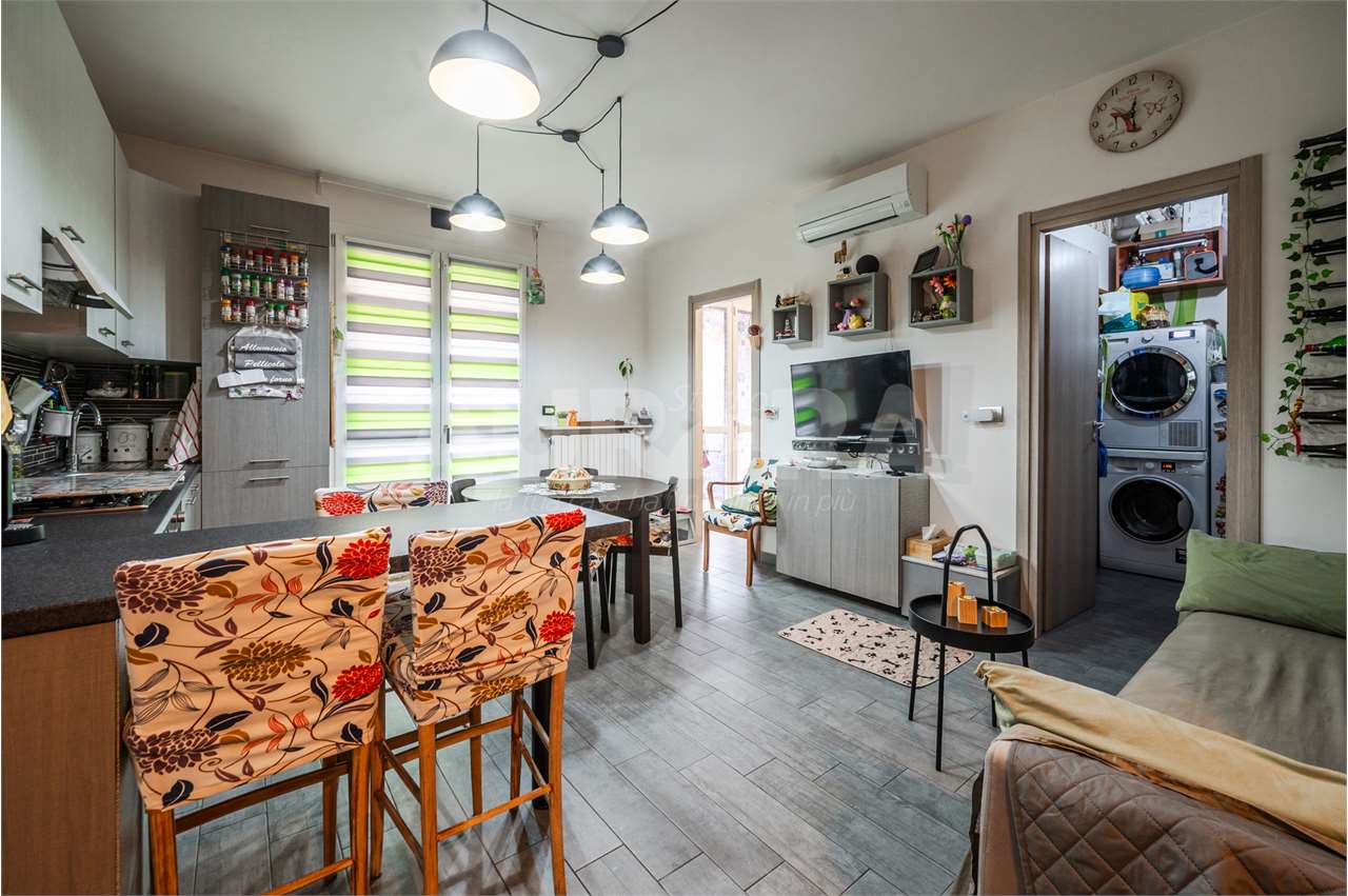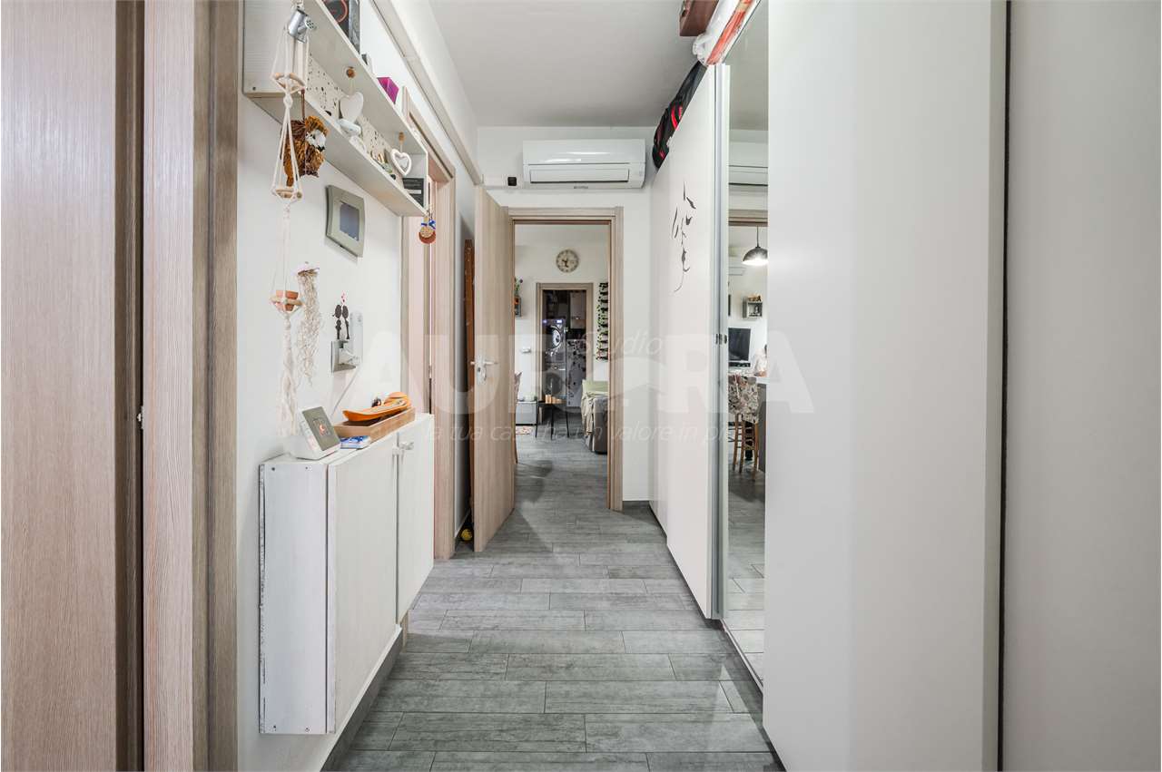 L’abitazione è stata completamente rimessa a nuovo nel 2020 e si presenta in condizioni eccellenti: ingresso su salotto con zona pranzo e cucina, lavanderia separata, ripostiglio utilizzabile come camera singola, balcone, disimpegno, bagno, camera matrimoniale e camera tre quarti.