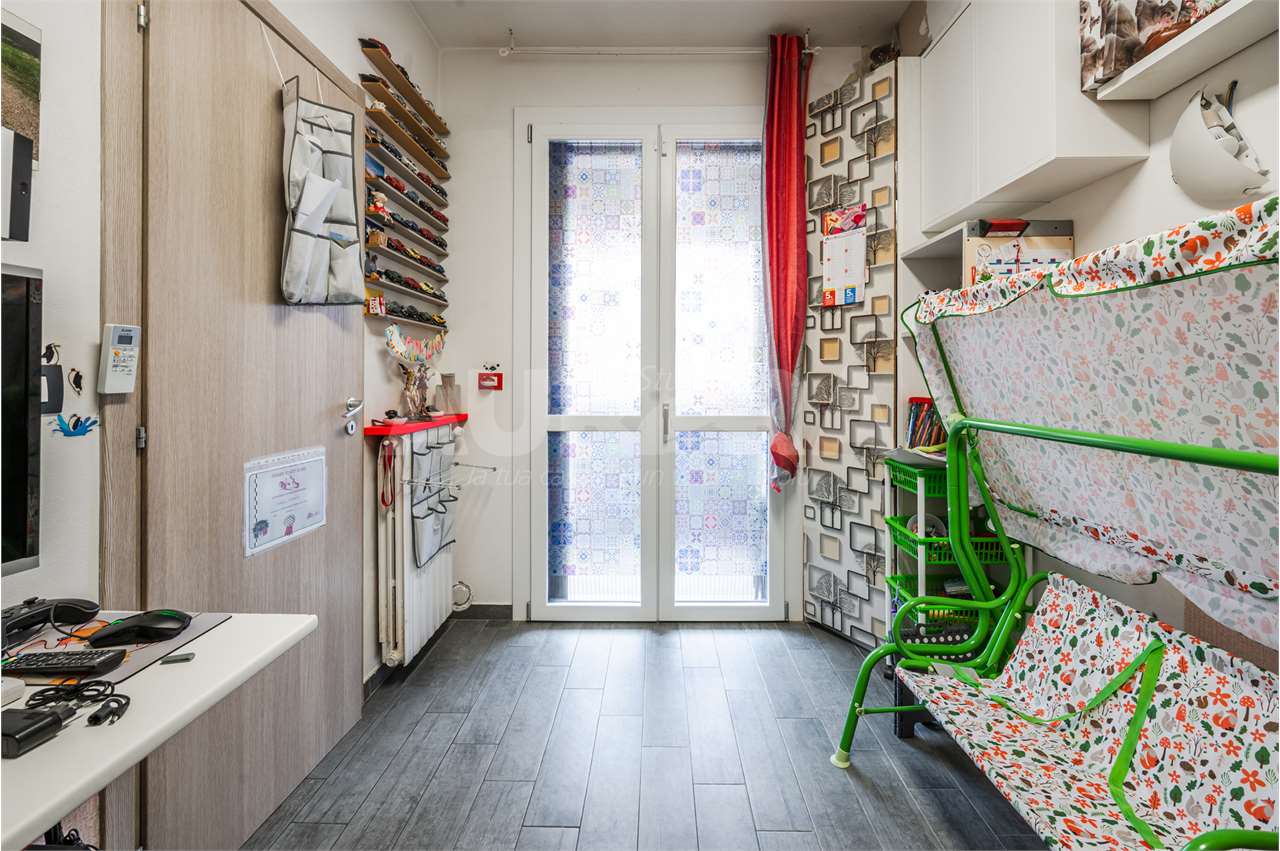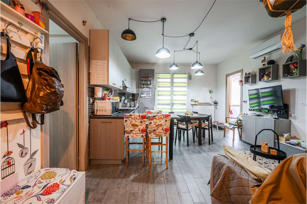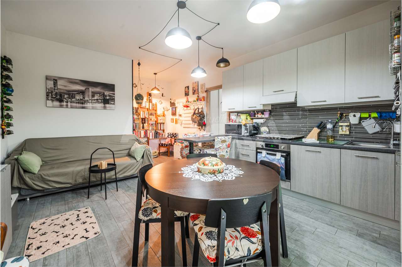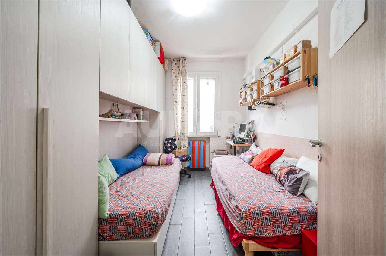 L’abitazione è stata completamente rimessa a nuovo nel 2020 e si presenta in condizioni eccellenti: ingresso su salotto con zona pranzo e cucina, lavanderia separata, ripostiglio utilizzabile come camera singola, balcone, disimpegno, bagno, camera matrimoniale e camera tre quarti.