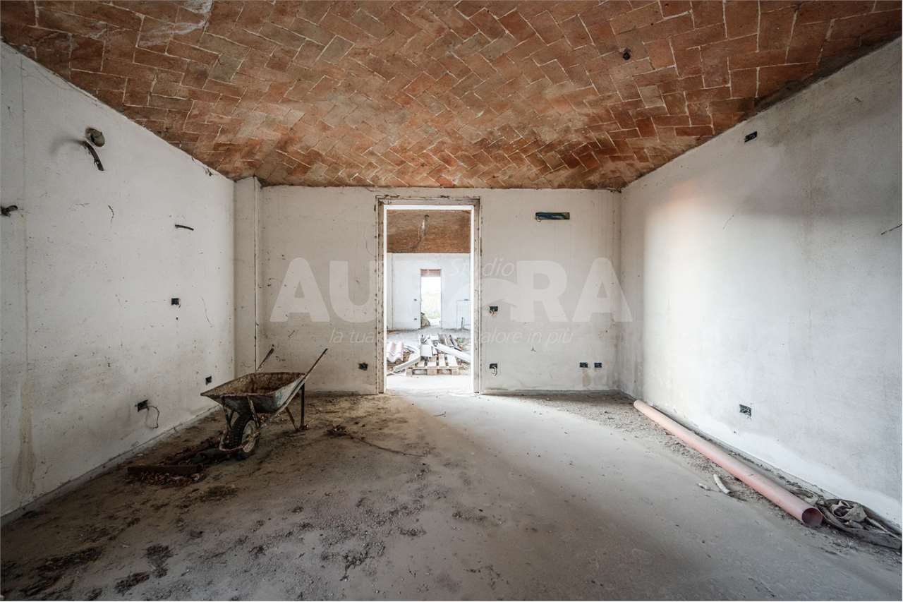 Edificio singolo libero su quattro lati, costruito nel 2010 e da completare, con una metratura totale di circa 700 m². L’attuale progetto è pensato per un agriturismo o un B&B, con cinque stanze matrimoniali già previste, tutte con bagno privato, ulteriori camere di grandi dimensioni, spaziosi vani polifunzionali e spazio sufficiente per personalizzare gli ambienti secondo le proprie necessità.