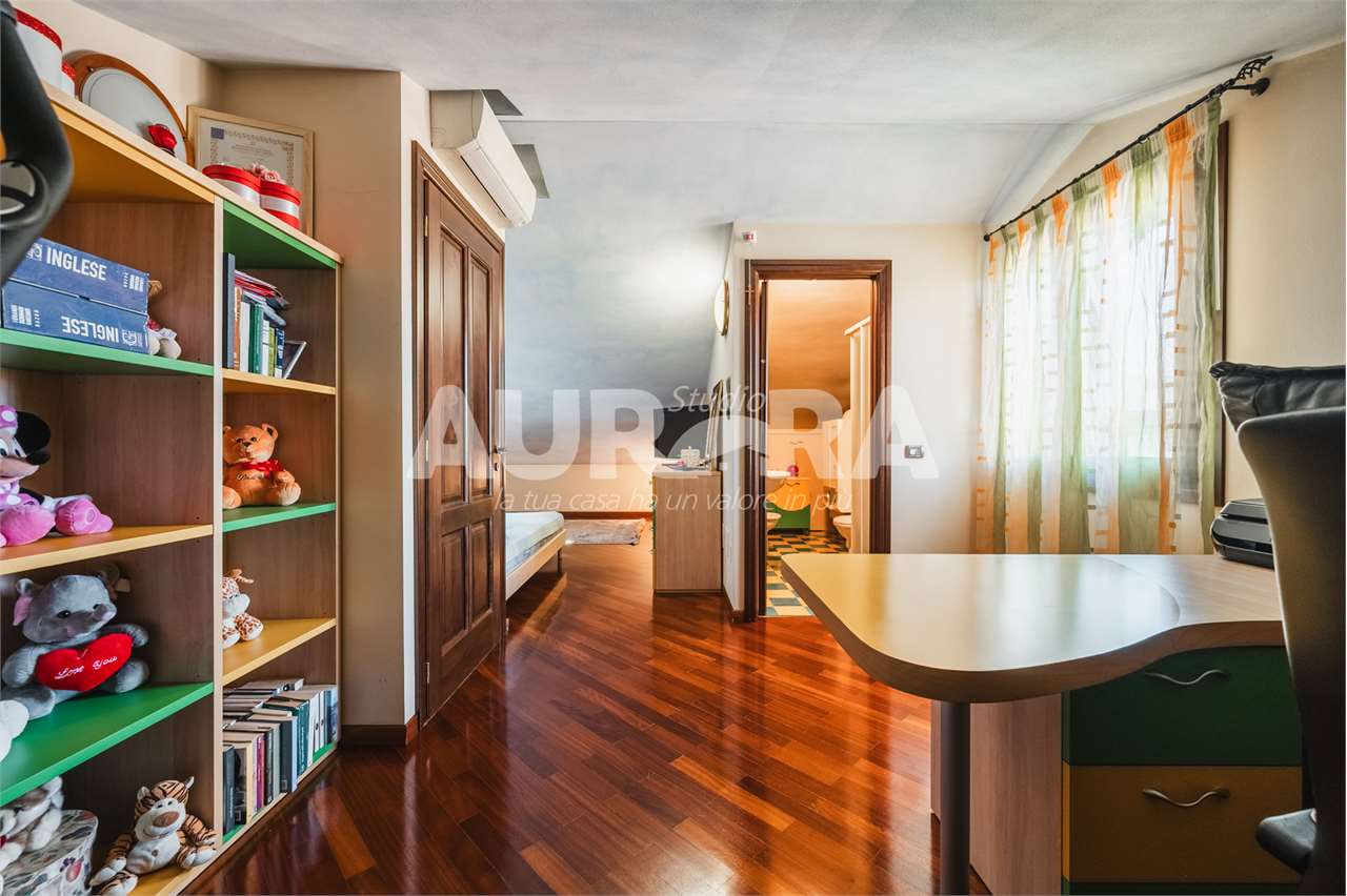 Al primo piano si trovano una camera singola, una camera tre quarti, un bagno e una camera principale con bagno privato e antibagno. Salendo ancora, l’ultimo piano ospita una spaziosa soffitta con lavanderia aggiuntiva. Ogni ambiente è stato rifinito con materiali scelti con attenzione: pavimenti in marmo nella zona giorno, parquet nella zona notte, infissi in legno con vetri doppi, zanzariere, inferriate, antifurto, porta blindata e bagni firmati.