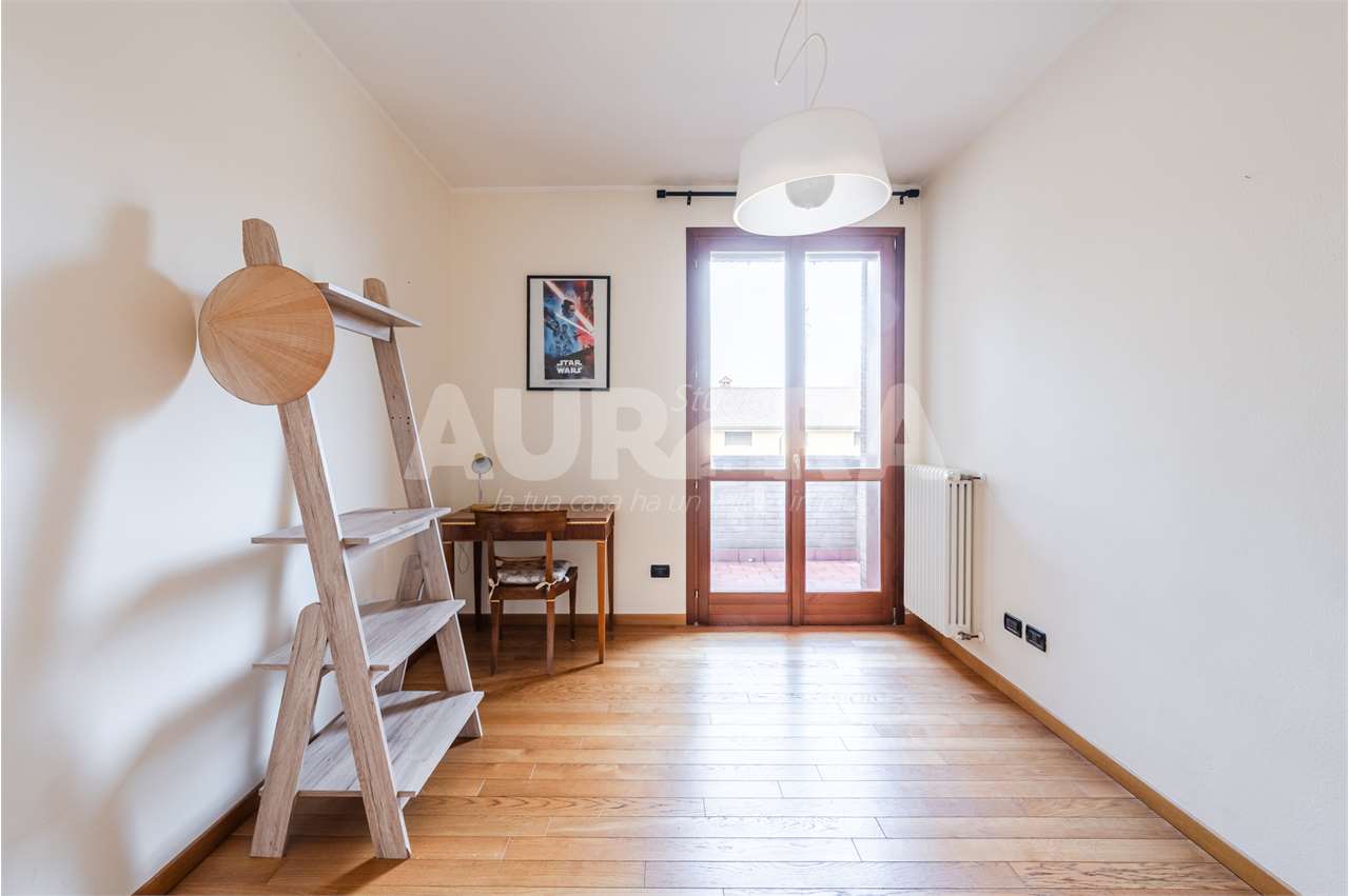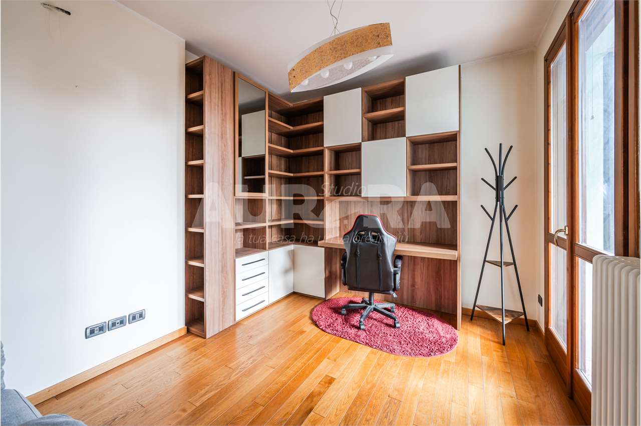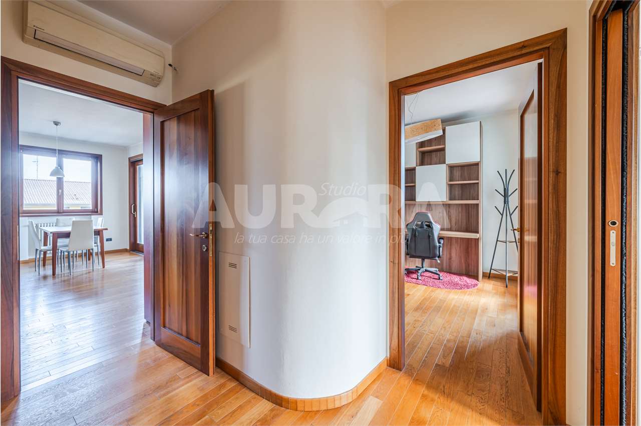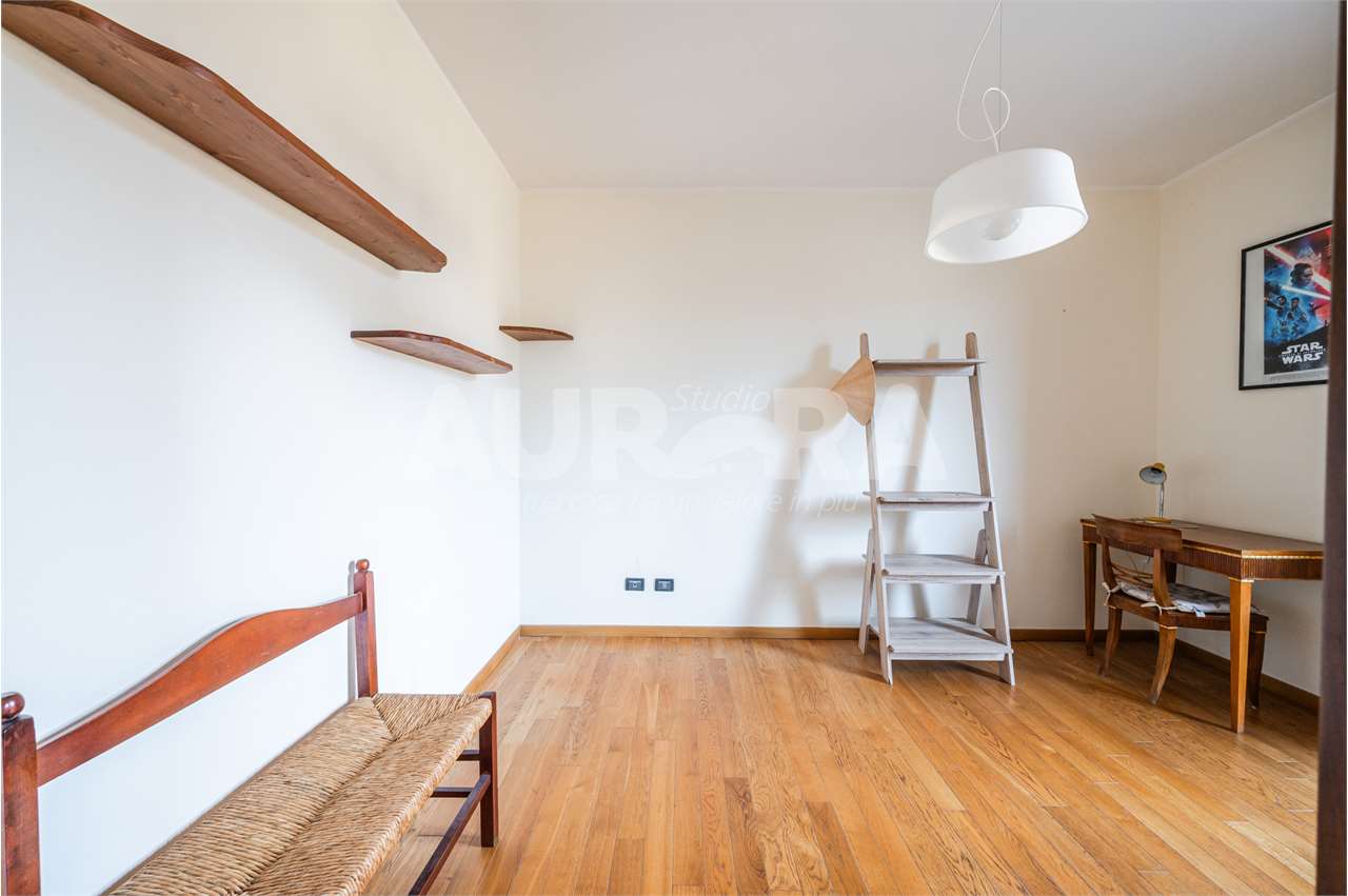 Siamo al secondo piano di una palazzina in mattoni a vista del 2003. Gli spazi sono davvero generosi: sala con zona cottura di grandi dimensioni, due camere da letto, studio, bagno e ripostiglio comodo come lavanderia.