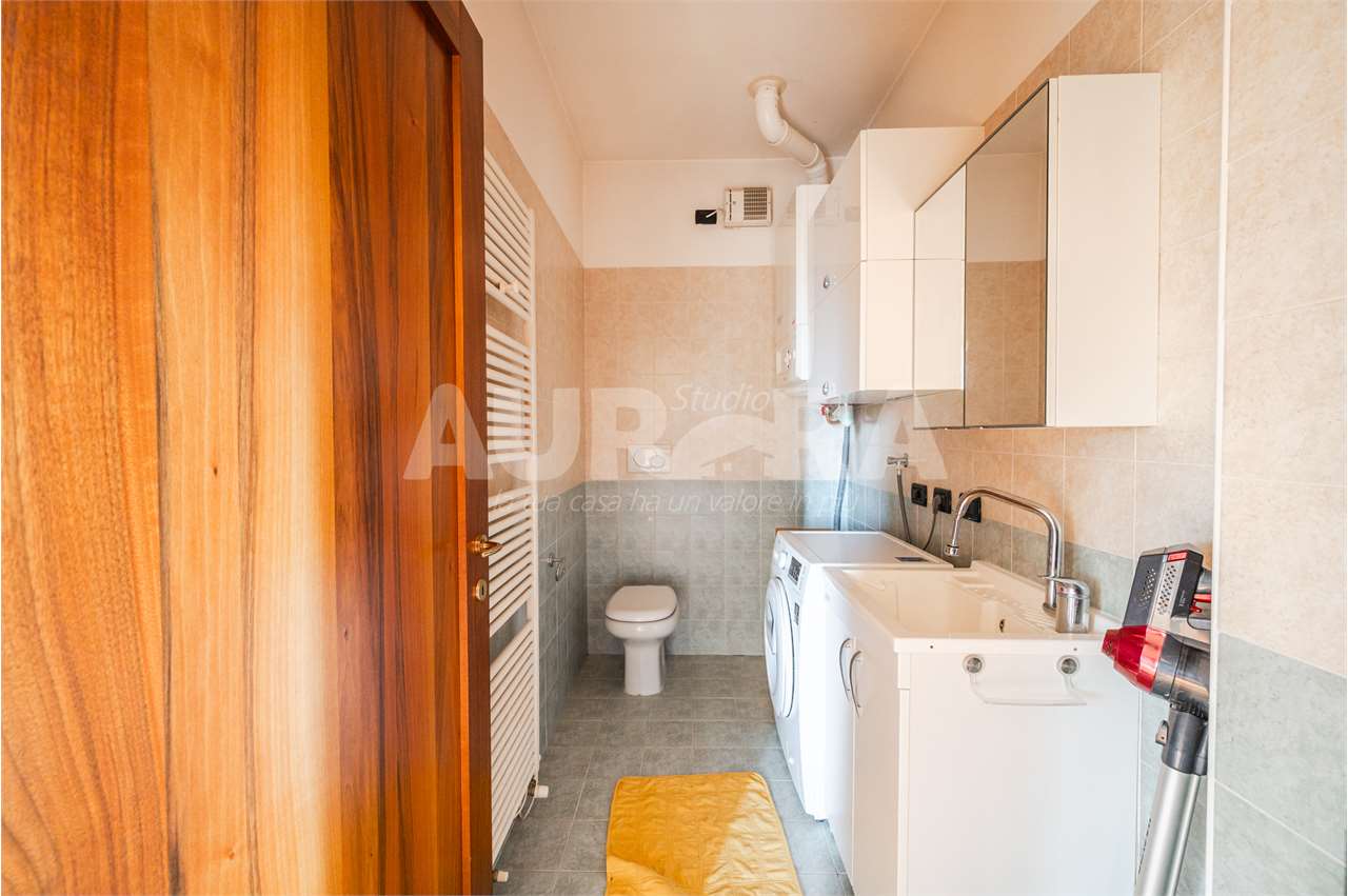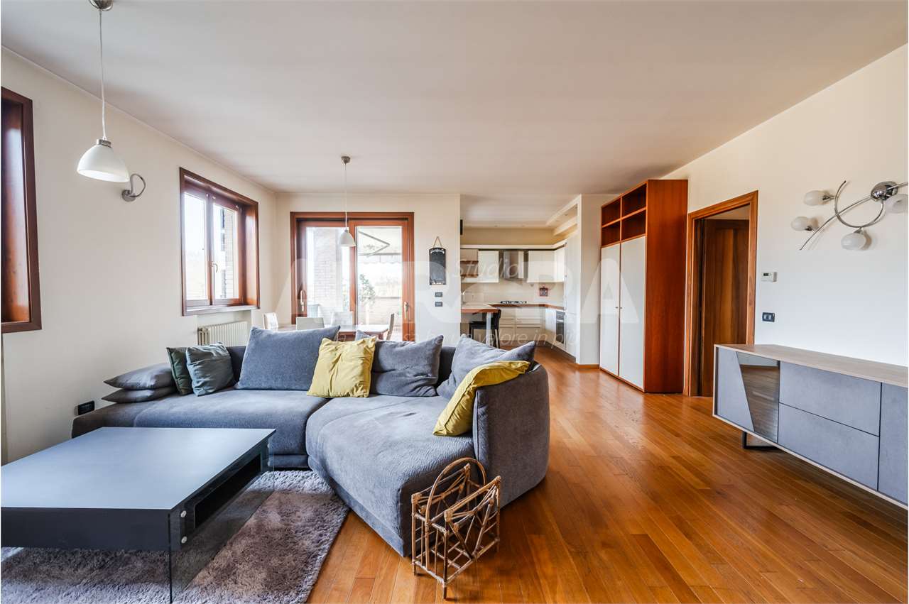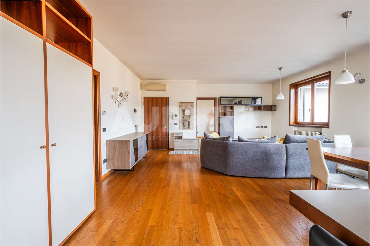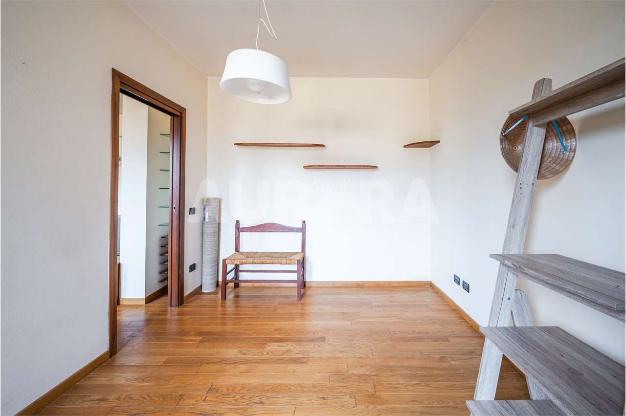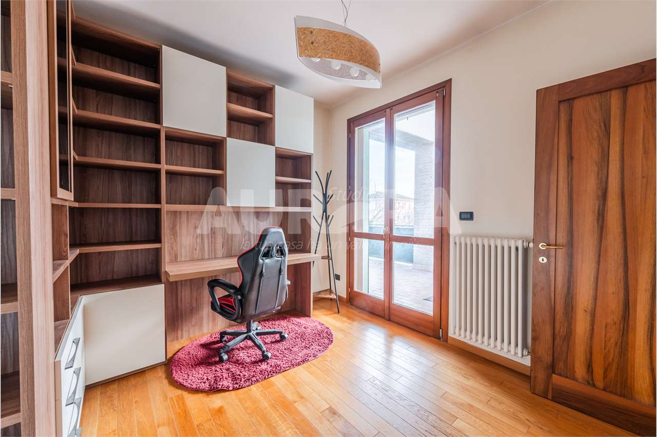 Siamo al secondo piano di una palazzina in mattoni a vista del 2003. Gli spazi sono davvero generosi: sala con zona cottura di grandi dimensioni, due camere da letto, studio, bagno e ripostiglio comodo come lavanderia.