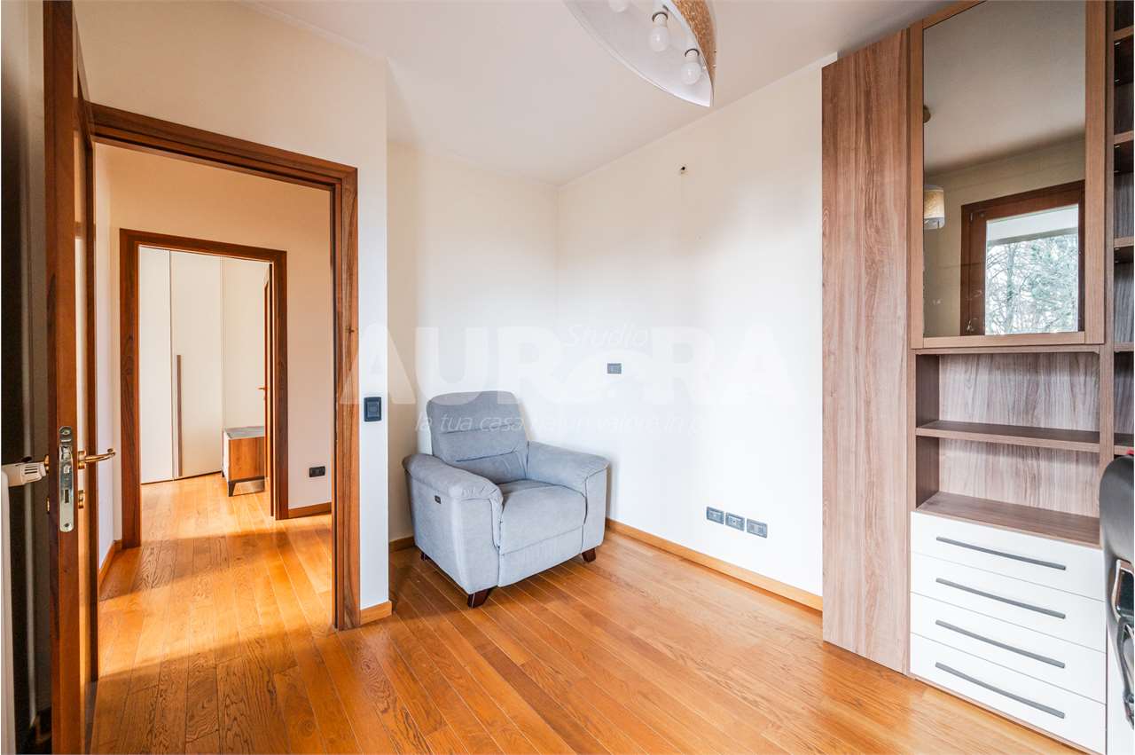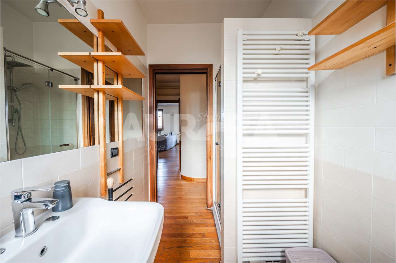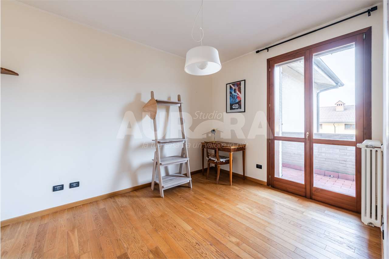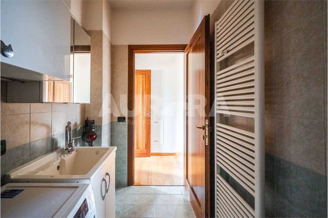 Siamo al secondo piano di una palazzina in mattoni a vista del 2003. Gli spazi sono davvero generosi: sala con zona cottura di grandi dimensioni, due camere da letto, studio, bagno e ripostiglio comodo come lavanderia.