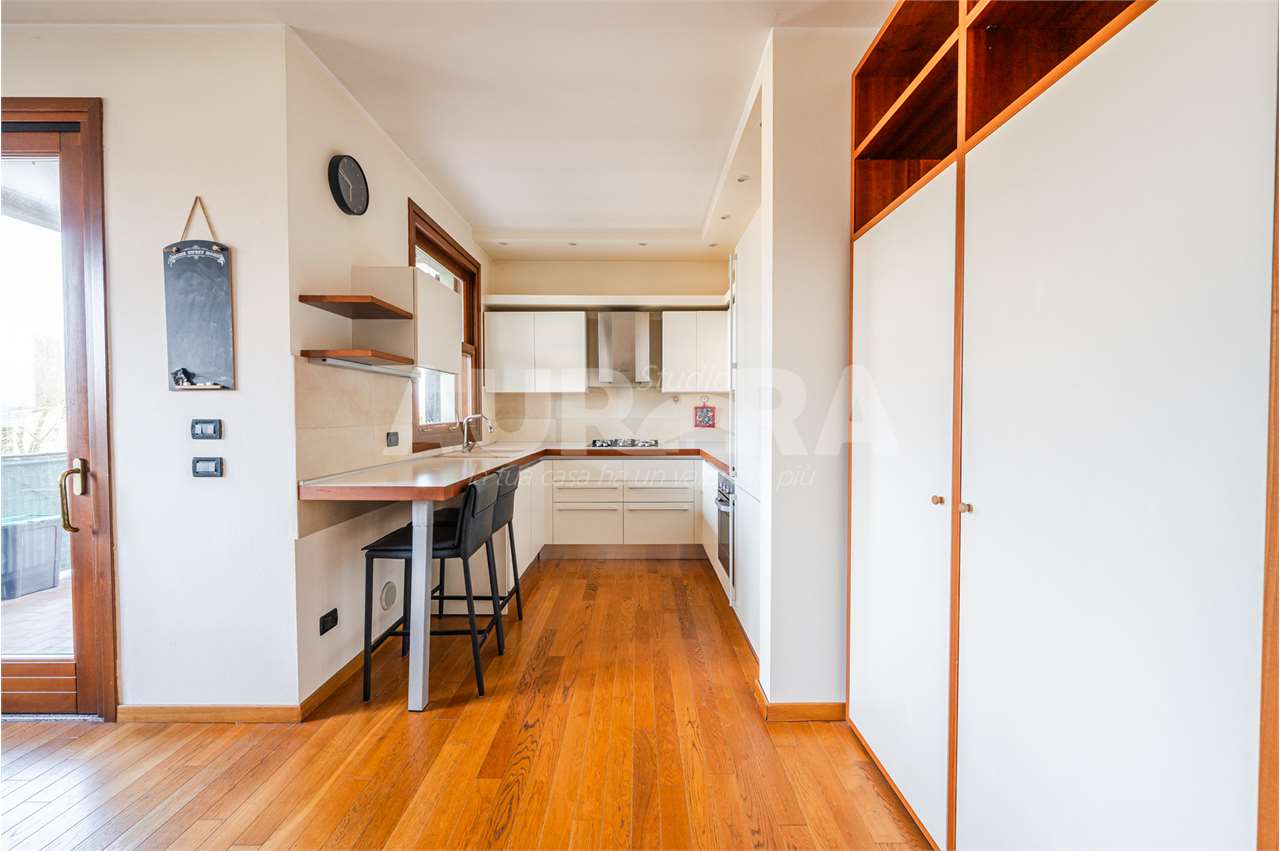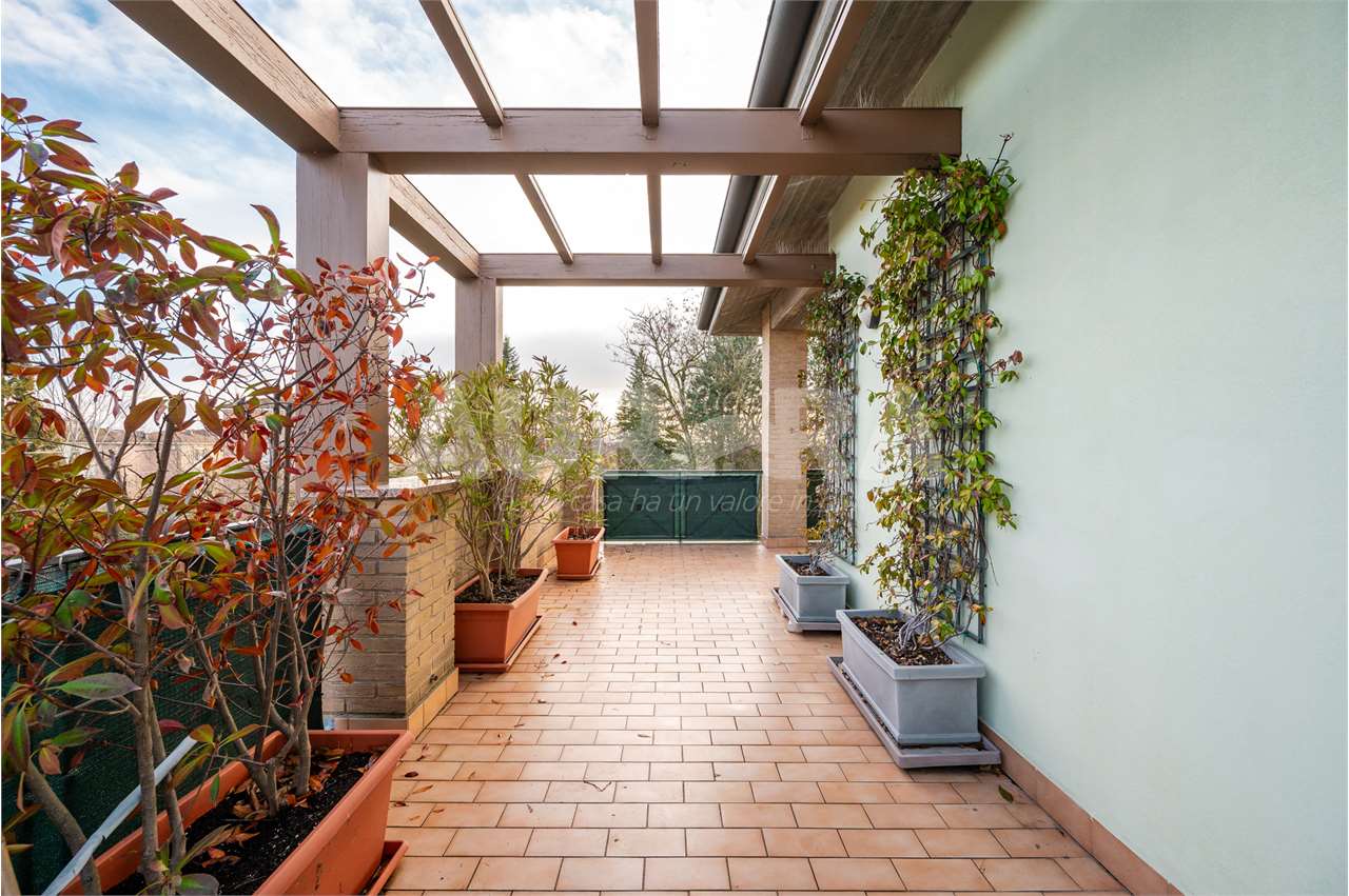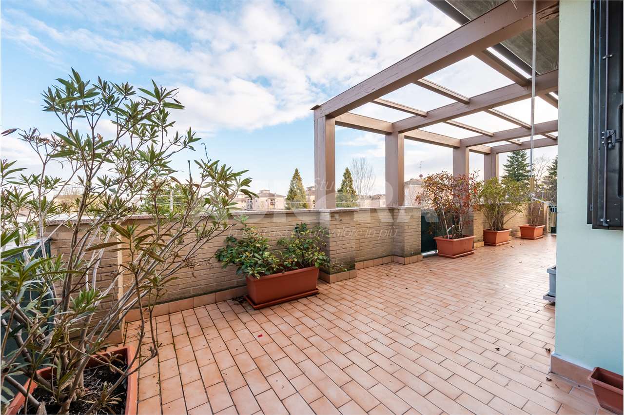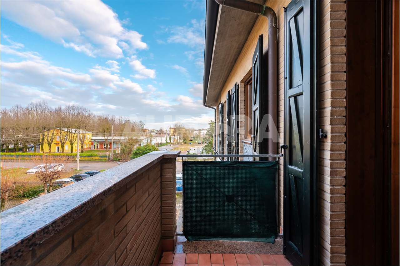 All’esterno trovi tre balconi e un terrazzo enorme, vero punto forte della casa. Garage al piano terra.